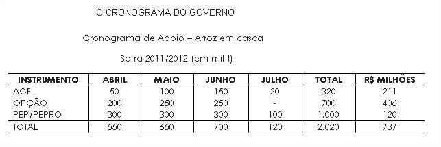 Para Renato Rocha, presidente da Federarroz, o pacote é muito bom e contempla as demandas setoriais mais emergenciais. “Temos recebido um apoio importante do ministro Mendes Ribeiro Filho e sua equipe, que têm um grande conhecimento das questões da orizicultura e estão se esforçando para resolver não apenas os casos pontuais, mas as questões estruturantes, como as assimetrias do Mercosul, a estagnação do consumo e os custos de produção”, enfatizou o dirigente. Segundo ele, os preços estão estabilizados no Rio Grande do Sul em torno de R$ 25,00 e com 25% da safra colhida, o anúncio destas medidas deve impactá-los positivamente. “Esperamos a recuperação das cotações acima do preço mínimo de garantia e um patamar remunerador em 2012/13, por conta dos estoques mais ajustados”, frisa o dirigente.